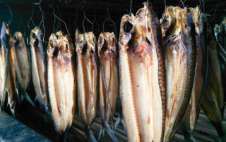 飛魚不只是蘭嶼有,行經花東海線一帶其實會看到不少人在賣飛魚,今天來分享位於石梯坪附近的「升火依娜現烤飛魚」。依娜在阿美族語中代表著媽媽的意思,小店很簡樸,有著紅磚砌起來的窯,一排排的飛魚就是掛在這窯裡面,飛魚的下方舖滿了月桃葉,最下面才用柴燒煙燻滿八小時才行,是阿美族的傳統好料唷!
