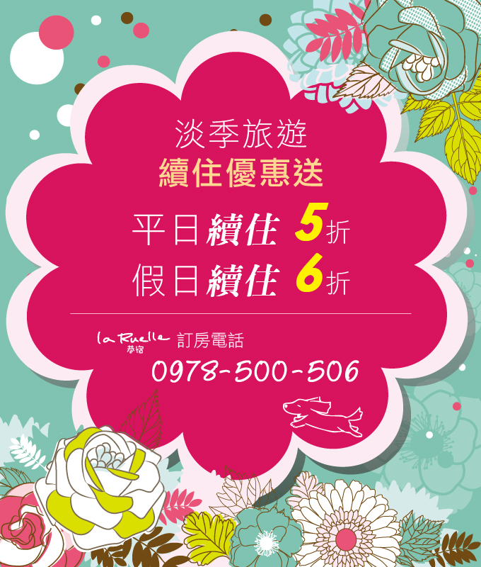 花蓮巷宿民宿轉眼間也滿一年了,決定推出淡季優惠來回饋旅人們,我想,就先來個續住五折起吧!放自己一個假,避開鬧哄哄的連續假期,來一趟花蓮旅行漫活一下吧…^^