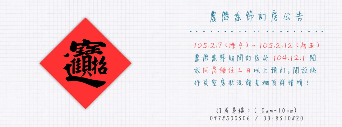 2016年農曆春節訂房即將開放囉!