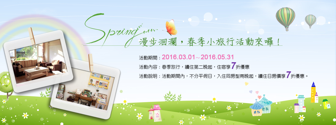 2017年春節期間為2017/1/28(初一)~2017/2/1(初五),為減少出遊住宿需更換民宿的不便,在開放條件及訂房方式稍稍做了調整,如有不便之處也請各位旅人多多包涵...