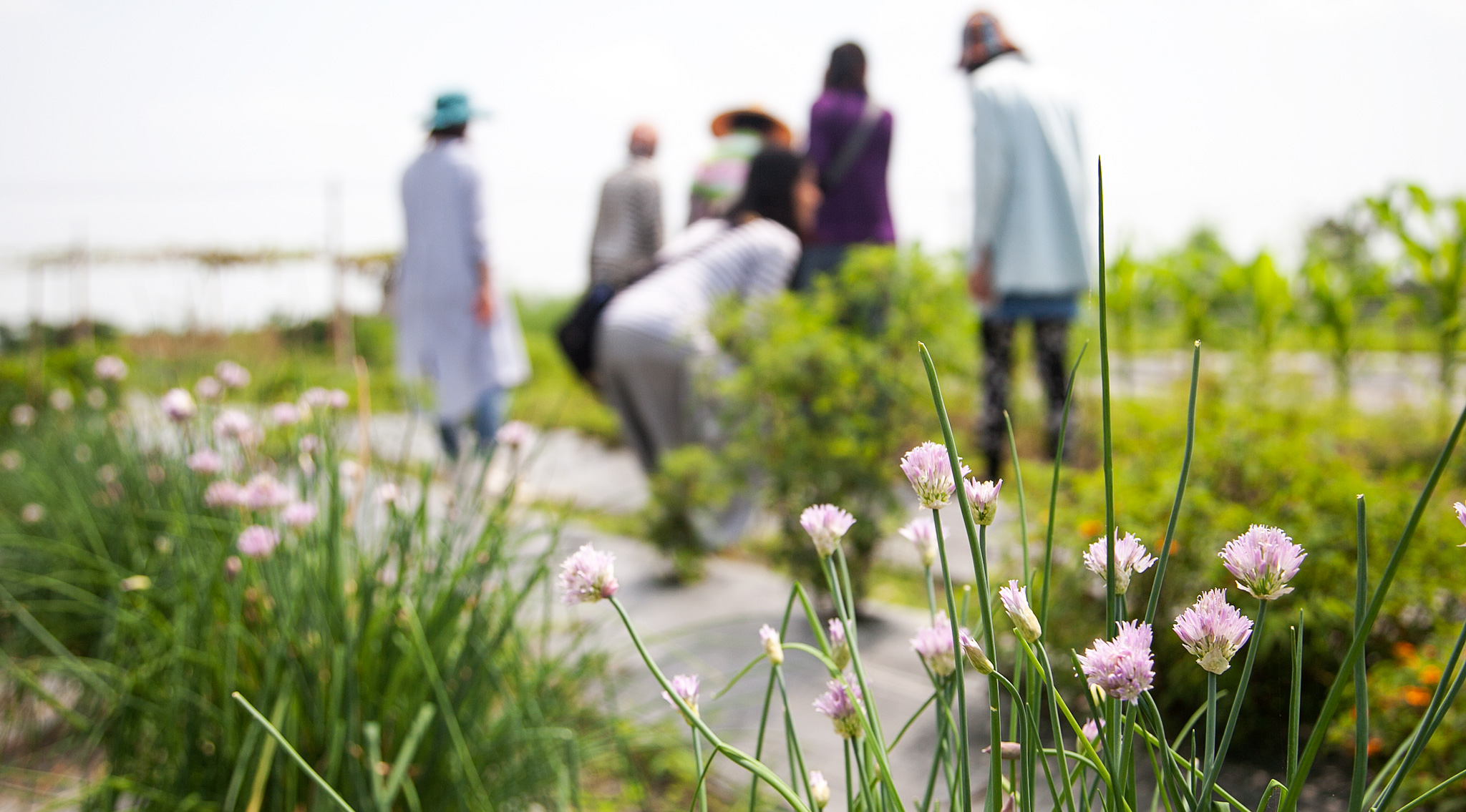 像個聞香師,採集喜歡的香草入菜;在巴吉魯樹蔭下襯著夏日的光影,烤一隻汁多味美的金黃桶仔雞,捏起拌入紫蘇鹽的飯糰小丸子,一起準備一場華麗的田園午宴。